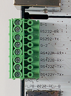 There are two rails (A and B). Each rail has 12 I/O pins that go to 3 KardIO slots (4 each) and two rail power supply connections (+VRAIL and -VRAIL). The power supply connections allow for isolated I/O and independent voltages from the Quick™ power supply and on the A and B rails.