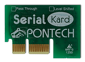 The Serial Driver Kard™ has one RS-232 level shifter (Serial 1) and two half duplex RS-485 level shifters (Serial 2 and Serial3), the two RS-485 level shifters can be used together as a single RS-422 level shifter. All level shifters are are broken out on Rail C. The two RS-485 level shifters can be tied to the H-bus connector though user installed zero ohm jumpers.